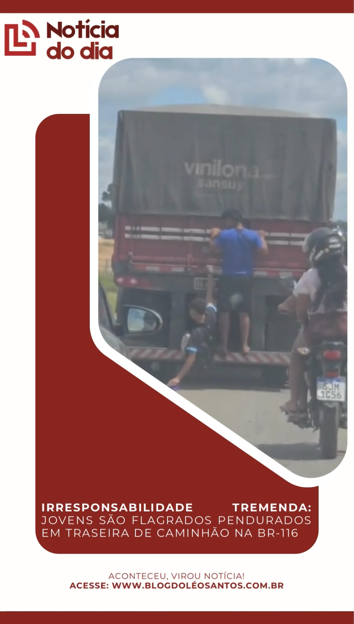 Uma cena de total imprudência foi registrada nesta quarta-feira (07) nas rodovias que cortam Vitória da Conquista. Um vídeo enviado por um leitor do Blog mostra dois jovens arriscando a vida ao pegar o perigoso ponga na traseira de um caminhão baú em movimento.
