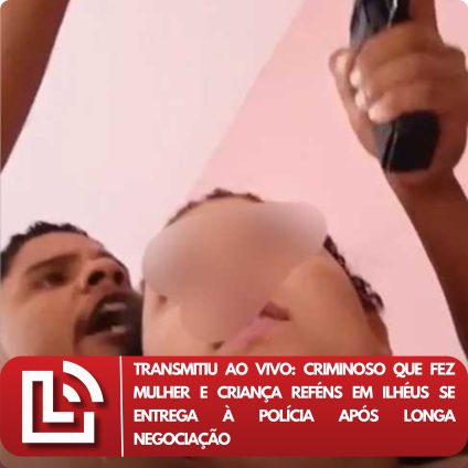 Após horas de muita tensão, chegou a um final feliz a situação de reféns na cidade de Ilhéus, no sul da Bahia. Um homem armado que mantinha uma mulher e uma criança em cativeiro se rendeu pacificamente e foi preso em flagrante.