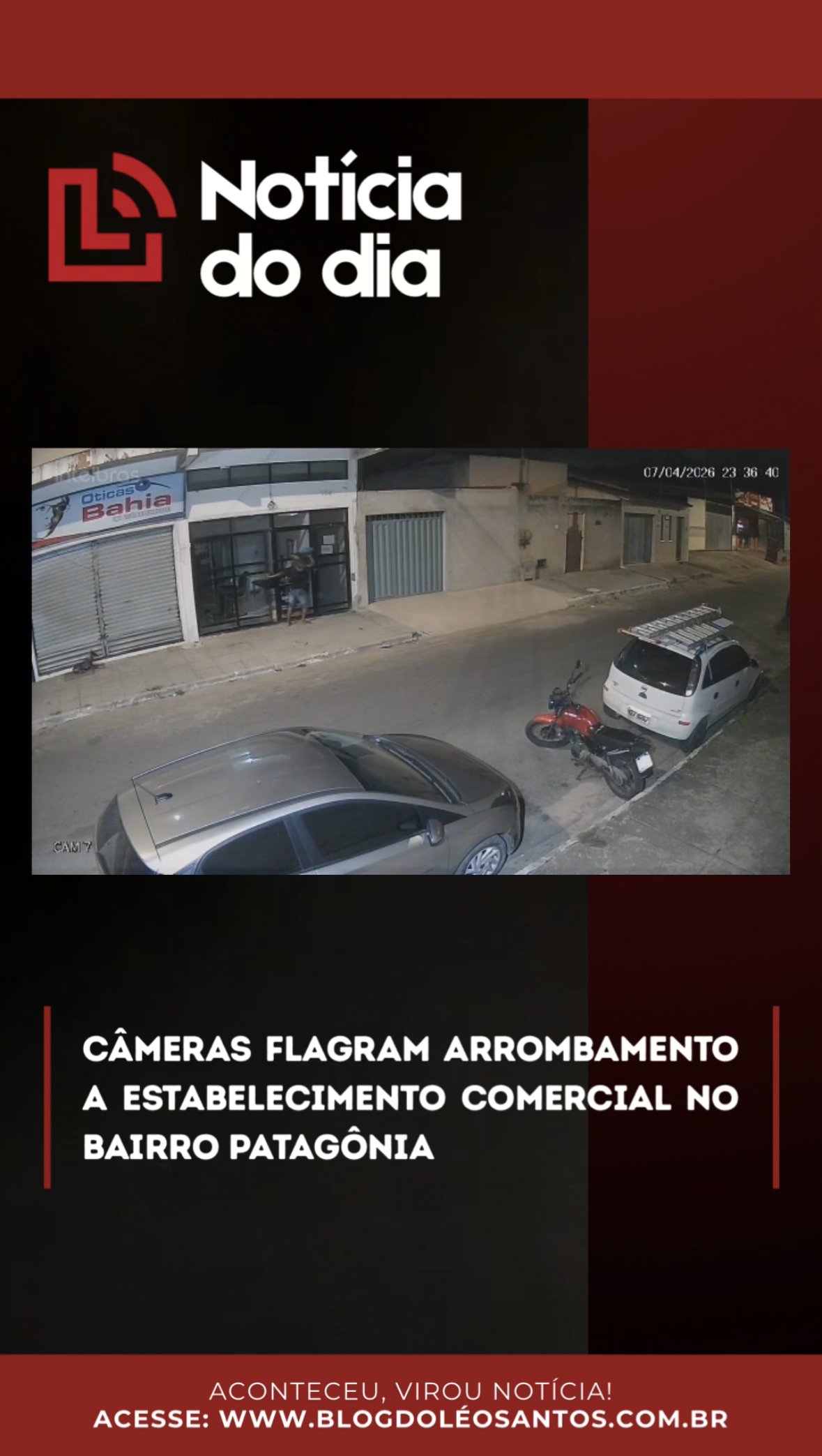 Câmeras flagram arrombamento a estabelecimento comercial no bairro Patagônia