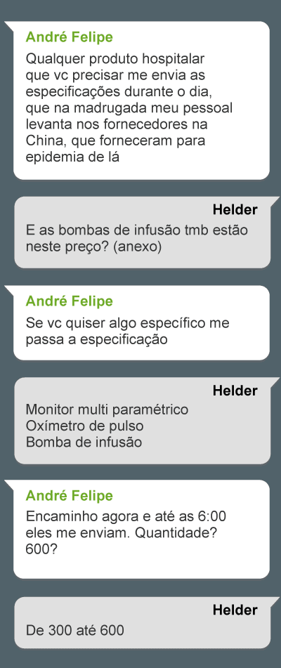 No meio do processo, o contrato foi modificado. O seguro passou a valer apenas a partir do momento em que os respiradores deixassem a China, de onde teoricamente seriam importados.
