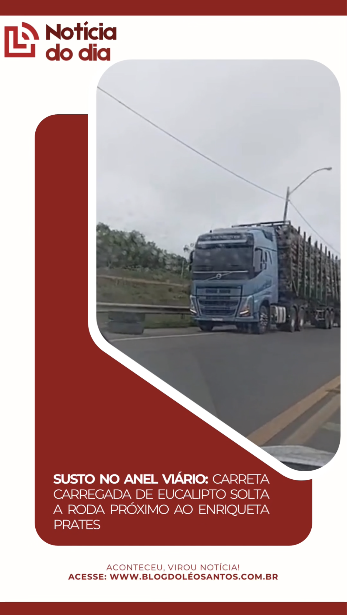 Um leitor do blog registrou uma situação de grande perigo no Anel Viário de Vitória da Conquista, no sentido Campinhos. Uma carreta carregada de eucalipto soltou uma das rodas em plena rodovia.